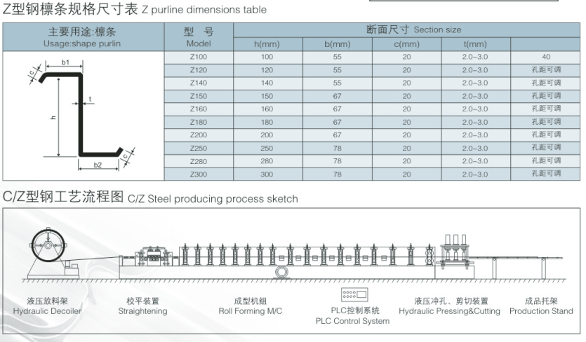 經(jīng)該機(jī)輥軋的c型檁條成品具有良好的抗彎抗壓性能,平直度好、全自動(dòng)定長(zhǎng)切割、自動(dòng)沖孔、自動(dòng)化程度高,安裝快捷方便。 產(chǎn)品可作為大中型工業(yè)民用建筑的主體受力結(jié)構(gòu),如廠房、 倉(cāng)庫(kù)、機(jī)車庫(kù)、飛機(jī)庫(kù)、展覽館、影劇院、體育場(chǎng)館、集市花棚的屋面承重荷載和墻面支撐。