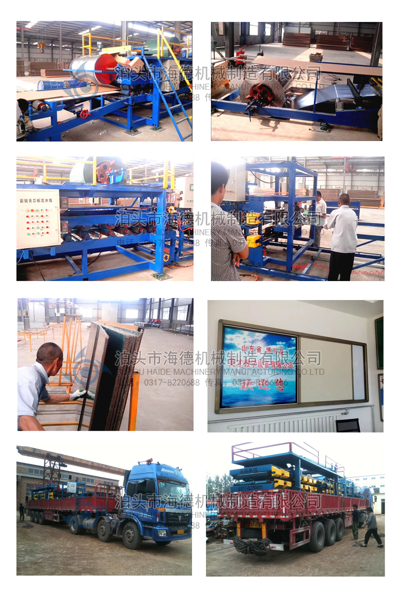 使用自動(dòng)化覆板流水線作業(yè),噴膠,壓固,切割下料;膠水為雙組份專用膠水,流水線自動(dòng)粘合成型,粘合面達(dá)100%,一次成型。