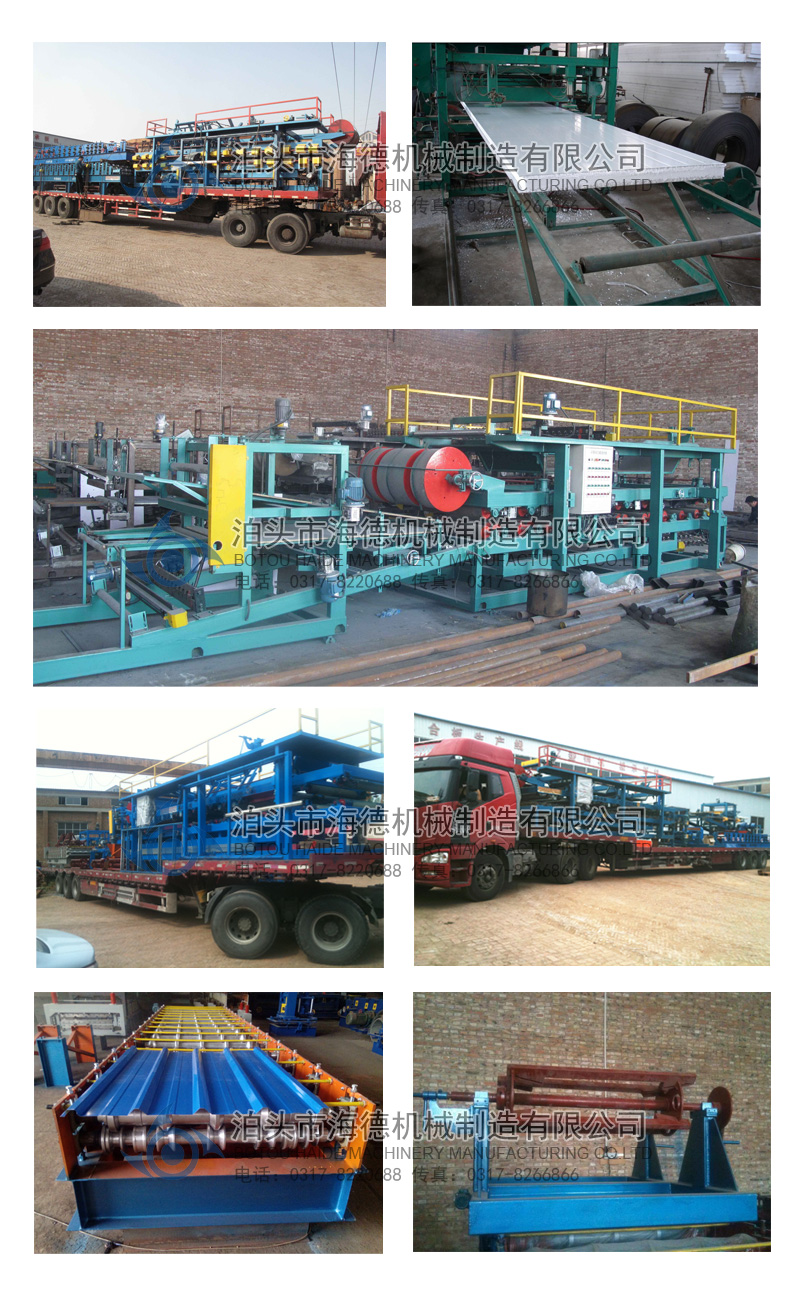 全套流水線(xiàn)放料機(jī)構(gòu)、壓型機(jī)構(gòu)(壓筋、涂膠、加溫、復(fù)合、卷邊、開(kāi)槽、整邊、氣動(dòng)、自動(dòng)切割)組成,是生產(chǎn)工業(yè)廠(chǎng)房、倉(cāng)庫(kù)等屋面板和墻板不可缺少的設(shè)備。